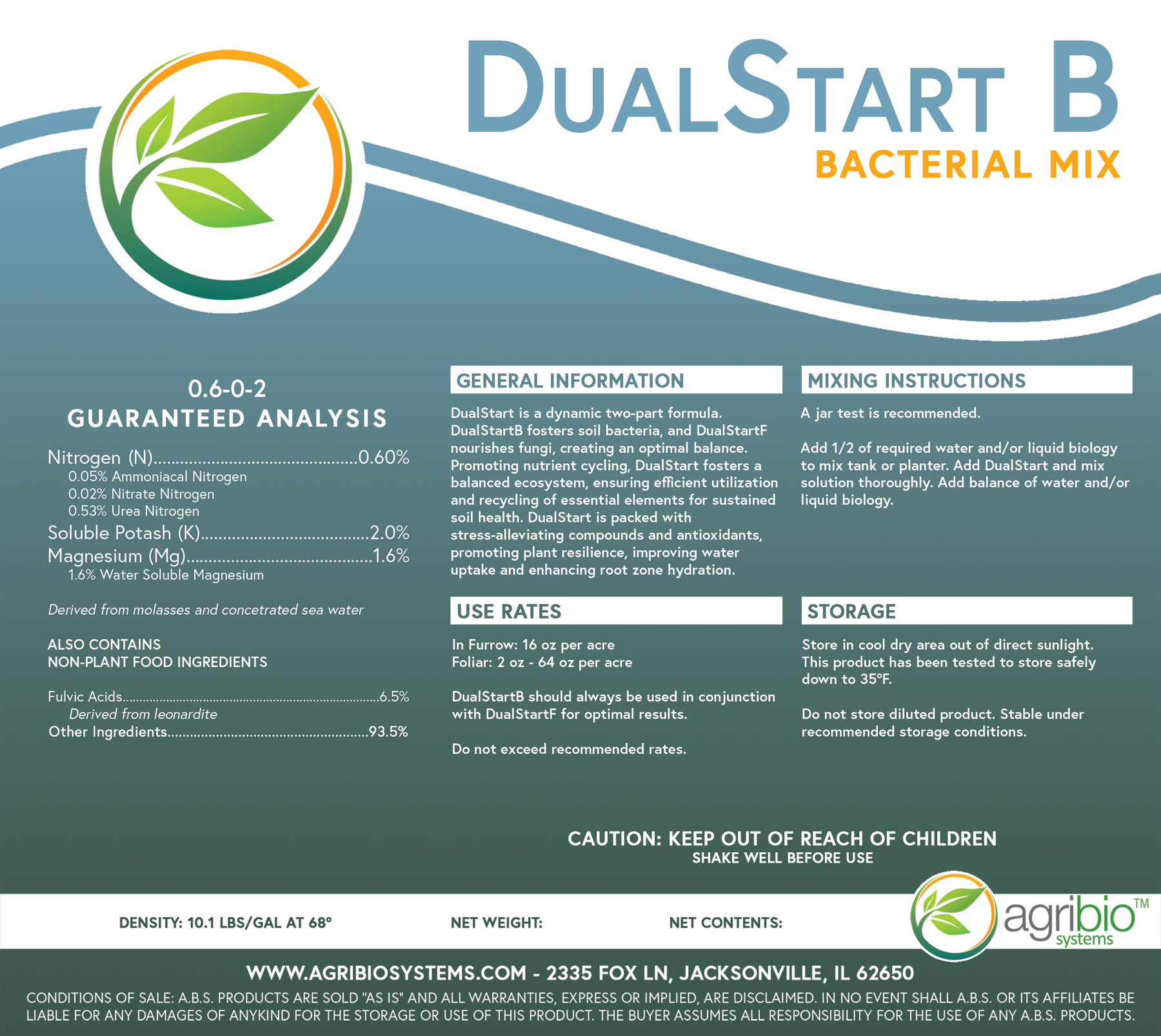 DualStart B should always be used in conjunction with DualStart F for optimal results. Do not exceed recommended rates.